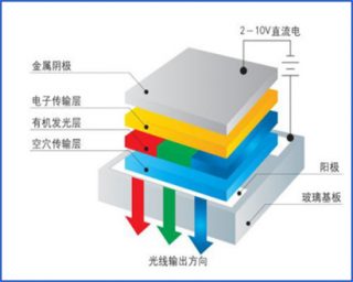 有機電致發(fā)光器件(OLED) ,因其自發(fā)光,亮度高,可視角度大等諸多優(yōu)勢,在顯示和照明領(lǐng)域備受青睞,具有極大的應(yīng)用前景。由于氧化銦錫(ITO)導(dǎo)電薄膜具有良好的導(dǎo)電性,以及在可見光范圍內(nèi)具有較高的透光率,使之廣泛應(yīng)用于光電領(lǐng)域,在有機電致發(fā)光領(lǐng)域也常常作為OLED的陽極材料。