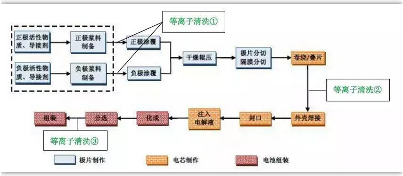 不同的生產(chǎn)工藝生產(chǎn)的電池性能差異很大。在3個(gè)制程中增加等離子清洗可以極大提高電池制造工藝水平。