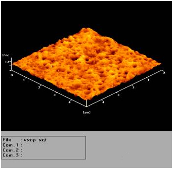 ITO膜是有機(jī)物膜進(jìn)行淀積的基底, ITO膜的表面形態(tài)將影響有機(jī)膜的成膜的吸附性、內(nèi)應(yīng)力和結(jié)晶度。由于粗糙的表面將不利于有機(jī)分子之間內(nèi)聚形成晶體,